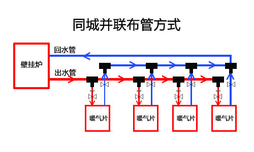 明裝暖氣片布管方式有雙管同程并聯(lián)和雙管異程并聯(lián)方式,一般前者使用較多。同程并聯(lián)特點(diǎn)是進(jìn)水管道與各個(gè)暖氣片之間距離很近,受熱均勻方便維護(hù)。明裝方式進(jìn)出水管道露在外面,美觀上要比暗裝方式差一些,有些家庭使用扣槽將管道隱藏起來,緩解了外觀上的不足。